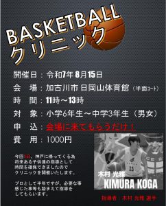 8月15日 日岡山体育館 11時〜13時にてクリニックを開催いたします。